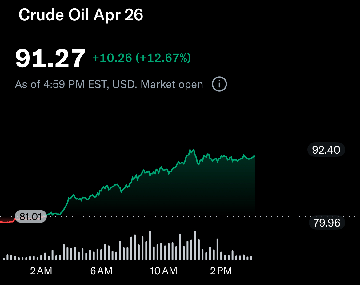 - WTI는 배럴당 약 90달러 수준까지 상승했고, 브렌트유 역시 90달러 초중반대까지 상승하며 100달러 가능성이 언급되고 있다.